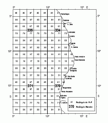 Fig. 3 - Quadrícula MARSDEN da área do Atlas da temperatura e da salinidade de superfície e da profundidade da termoclína.