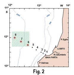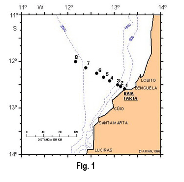 1968-1975 ao largo da zona central da costa de Angola. Para efeitos