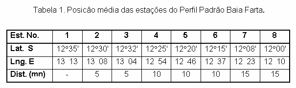 Na Tabela 1 indicam-se as coordenadas geográficas médias das estações e