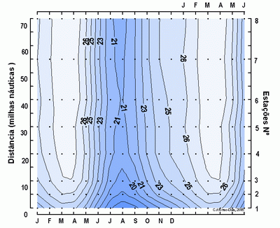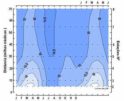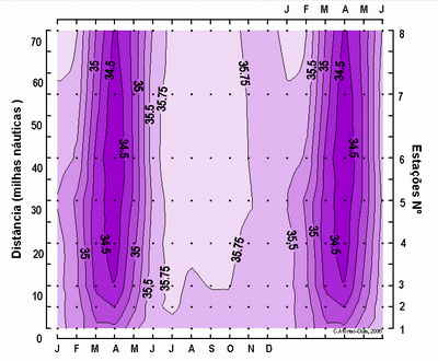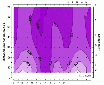 salinidade ao longo da Radial "Baia-Farta" (ano médio 1968/75)