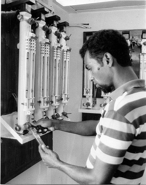 "N.I. GOA". Recolha de amostras de água das garrafas de inversão Nansen para a determinação de nutrientes (fosfatos, nitritos e silicatos reactivos) por métodos espectrométricos.